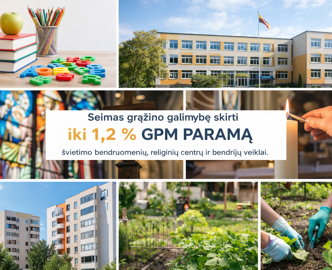 Seimas grąžino galimybę skirti iki 1,2 % GPM PARAMĄ švietimo bendruomenių, religinių centrų ir bendrijų veiklai